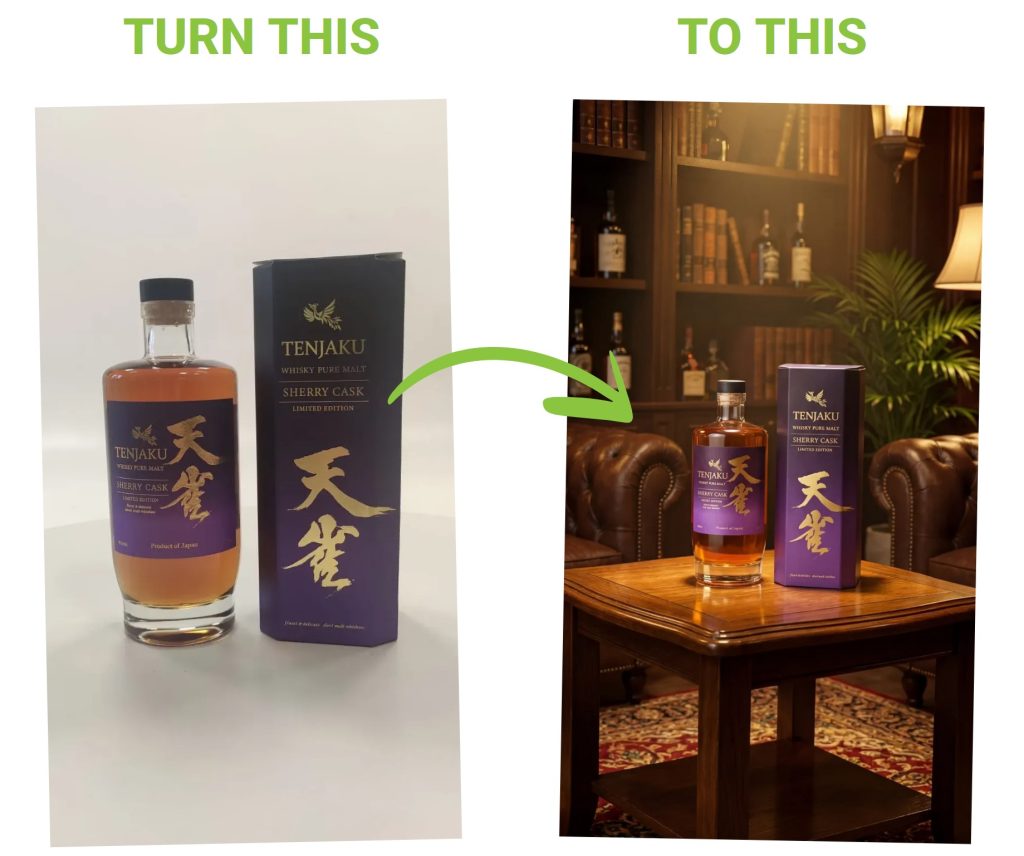 Most companies offer generic AI tools that attempt to generate product photos, but they often struggle with distorted labels, inaccurate packaging, and low-resolution results.